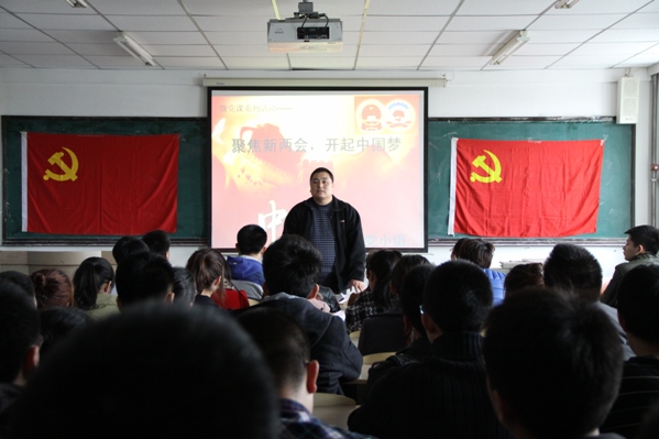 (通讯员 冯畅)为了进一步学习和贯彻“两会”精神,提高同学们的政治素养和思想觉悟,4月9日中午,学院于主楼1401开展微党课系列活动之“聚焦新两会,开起中国梦”理论学习活动。学生党支部书记郑洪斌和10、11级的所有入党积极分子、党员参加了活动。微党课由100311班党小组冯畅同学主讲。