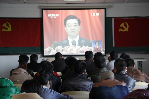 (通讯员 史梦婷)11月8日9:00,学院党委书记张学忠,党委副书记周文军,学生党支部书记郑洪斌、朱博,团委书记赵爽在我校教学主楼1401室同红旗社骨干成员共同观看了中国共产党第十八次全国代表大会的开幕式。