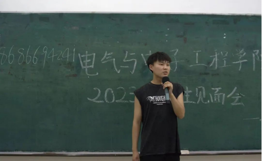 2021级学长班代进行自我介绍和讲话。他们分享了他们的大学经历,学习、生活就业方面的经验和对新生的建议。