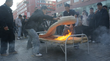不仅如此,老师们还教授同学们如何用被子扑灭床上的火源。安全处的老师向同学们科普,用被子灭火时,要选择厚实的棉被,将其浸湿后迅速覆盖在火源上,起到隔绝空气的作用,从而达到灭火的目的。