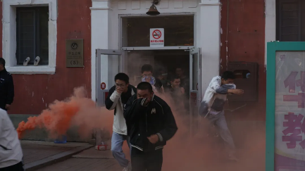 随着一声警报响起,紧张而有序的火灾逃生演练拉开帷幕。同学们在听到警报声后,迅速用湿毛巾捂住口鼻,弯腰低姿,按照预定的疏散路线快速撤离到安全地带。整个演练过程有条不紊,充分体现了同学们的应急反应能力和团队协作精神。