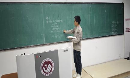 讲台上的学生自信满满,声音清脆。手中的笔在黑板上流畅滑动,思路清晰地讲解难题。他眼神专注,仿佛散发着智慧的光芒,同学们也听得格外认真,沉浸在知识的海洋中。