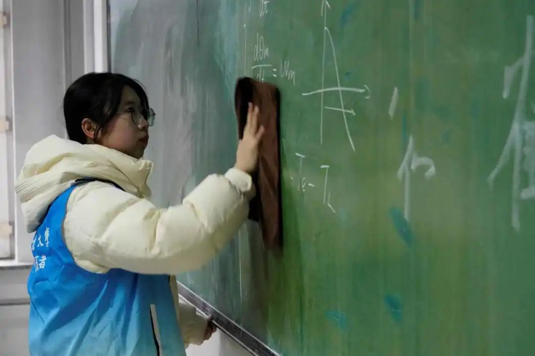 活动当日,志愿者们迅速集结,按照提前规划好的分组,在组长的有序组织与协调下,干劲满满地奔赴各自负责的区域,一场校园环境保卫战就此拉开帷幕。在校园道路上,志愿者们手持扫帚、拖把、垃圾袋等清洁工具,不放过任何一个卫生死角,将地面上的杂物、垃圾清扫得干干净净;走进教室,他们又化身为细致入微的“清洁使者”,仔仔细细地擦拭黑板,将课桌椅摆放得整整齐齐,每一处细节都被打理得井井有条。