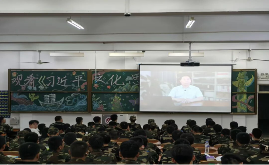 组织2025级新生在综合楼二楼观看习近平文化思想大讲堂活动,带领学生们深入领略习近平文化思想的深刻内涵与时代价值。