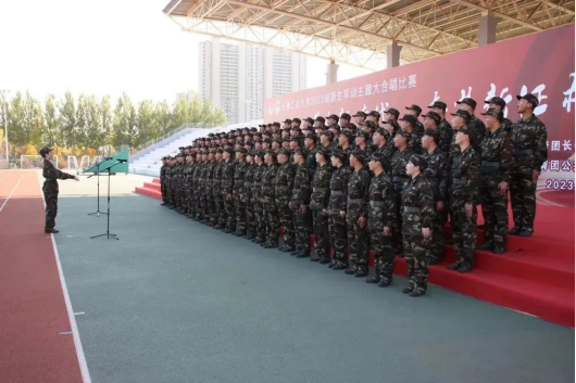 在北湖校区举办“唱响新时代,奋进新征程”2023级新生军训大合唱比赛。