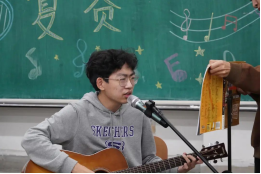 风吹可皱,落叶无声,一首首清新伤怀民谣萦绕耳边;遏云绕梁,扣人心弦,一支支情歌唱出青春的青涩;音符跳动,节奏拍打,一首首说唱让观众兴奋不已……美丽的歌喉,动人的吉他声回荡在教室,萦绕在耳边,回荡在心间,激情嘹亮的歌声,震撼了台下的所有评委。