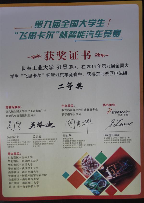 由我院杨洪涛老师指导,陆丹、任佳文、代祥狂暴队在第九届全国大学生“飞思卡尔”杯智能汽车竞赛获得二等奖,杨明旭、刘伟东、张久银获得三等奖。杨洪涛获优秀指导教师。