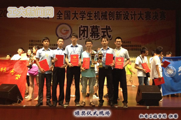 本届大赛以“幻•梦课堂”为主题,以“教室用设备和教具的设计与制作”为内容,吸引了来自28个省(直辖市、自治区)612所高校共计4180项作品参赛。决赛过程中,经过审阅设计资料、现场观摩实物演示和作品答辩等环节,评审委员会根据作品选题的新颖性、创新性、实用意义等方面进行了综合评价。我校选送的参赛作品“折叠式科氏惯量仪”荣获全国一等奖,取得了我校参赛以来的最好成绩,为学校争得了荣誉、增添了光彩。