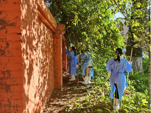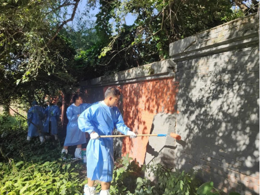 志愿服务团队,积极配合团队对南湖新村东街墙面进行粉刷翻新。