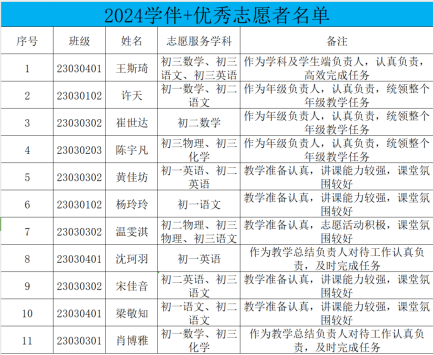 本网讯(通讯员 王亮)为深入贯彻党的二十大精神,关爱青少年健康成长,切实做好2024年寒假学生学业辅导工作,进一步落实立德树人根本任务,推动中小学学生网络学习共同体建设,实现家校共育、共同成长,我院积极响应号召,于2024年寒假期间开展了“学伴+”重点学生群体网络学业互助计划。回顾此次志愿活动,志愿者们的优异表现我们目共睹,经学院审核,决定对在“2024学伴+”活动中表现突出的优秀志愿者予以表彰,现予公告。