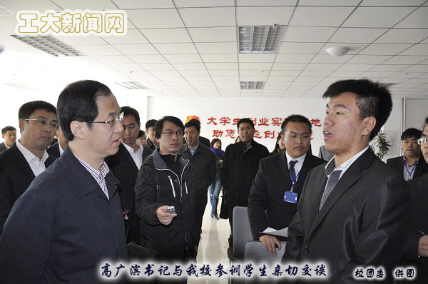省委常委、市委书记高广滨参观了大学生创业就业训练营现场,并详细询问了我院参训学生相关情况。