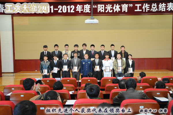 表彰大会在庄严的国歌声中开幕。体育教研部副主任杨继华宣读表彰决定。学院获一等奖。赵爽、李爱华被评为组织先进个人,在全国各项比赛中取得优异成绩的李杰、秦国鑫被评为运动竞赛突出贡献奖。