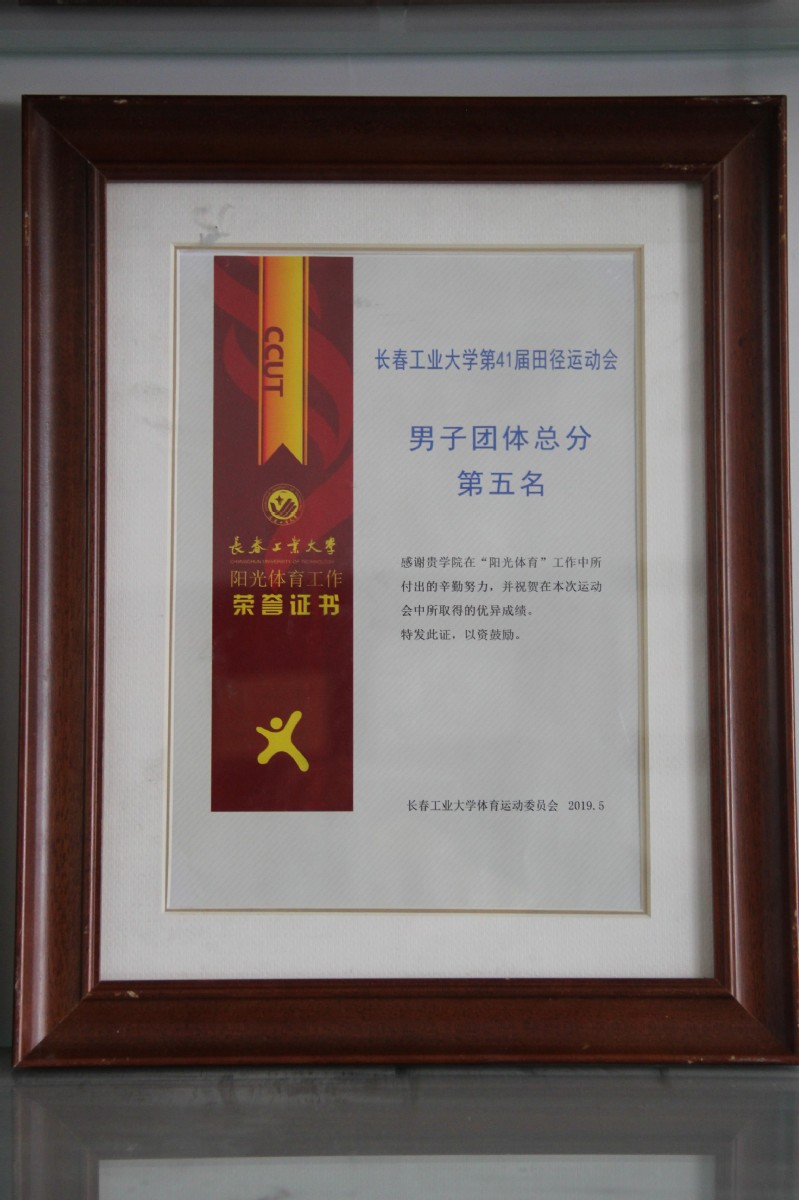 学院获得51吃瓜 第四十一届运动会学生男子团体部分第五名
