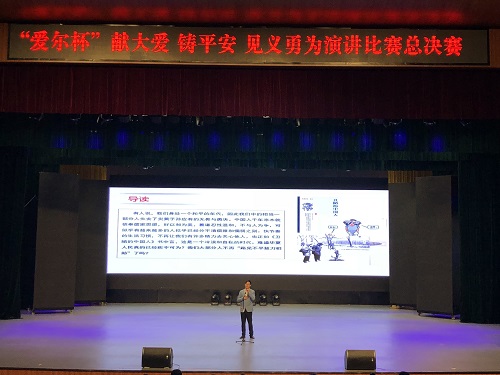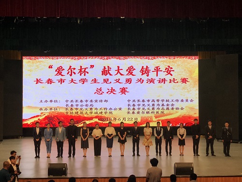为弘扬中华民族见义勇为的传统美德,学习英雄关爱他人、乐于奉献的高尚情操。由中共长春市委宣传部、中共长春市高等工作委员会、长春市公安局、长春市见义勇为基金会联合主办,长春市见义勇为办公室、吉林建筑大学城建学院、长春市爱尔眼科联合承办的“爱尔杯”献大爱 铸平安见义勇为演讲比赛决赛,于2018年6月22日在长春建筑大学礼堂隆重举行。我院2017级学生钟昊辰在复赛中以骄人的成绩进入决赛,并在决赛中获得优秀奖的优异成绩,其作品得到了评委的一致好评。