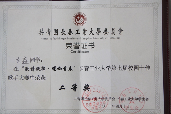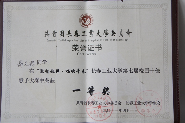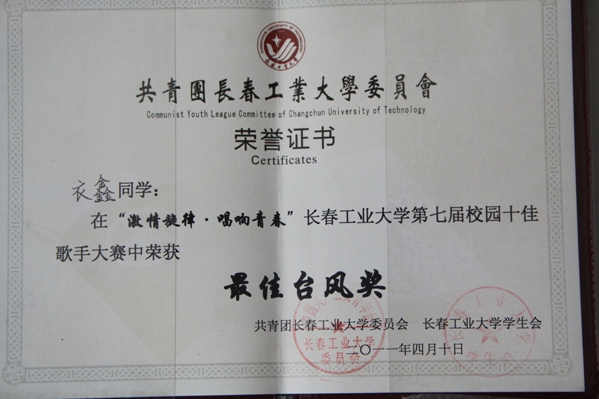 近日,我院学生高文典、衣鑫、刘春雨在“激情旋律•唱响青春”51吃瓜 第七届校园十佳歌手大赛决赛中分别获得一、二、三等奖,衣鑫并获得最佳台风奖,我院获得优秀组织单位。