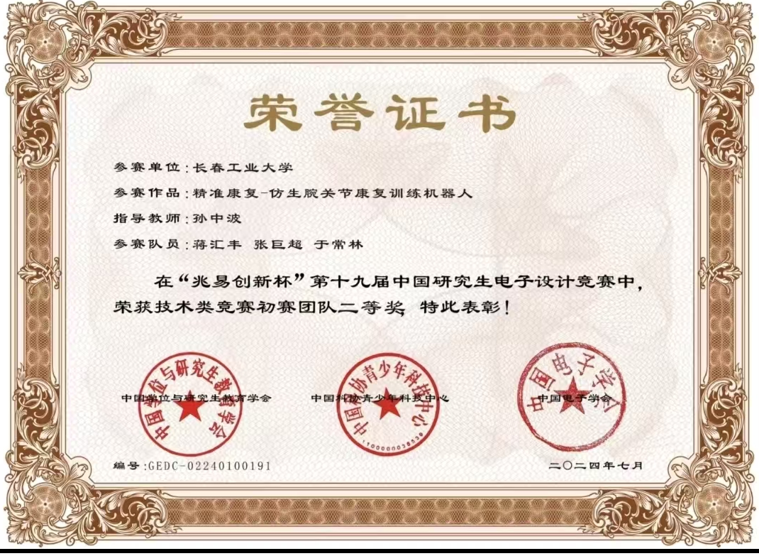 我校学生蒋汇丰,张巨超,于常林在“兆易创新杯”第十九届中国研究生电子设计竞赛技术类竞赛初赛荣获团队二等奖