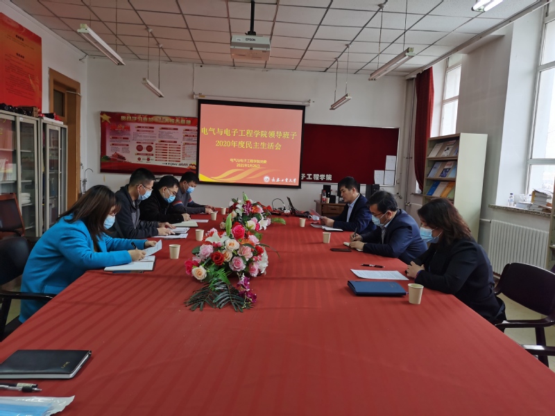 党委在电气楼1301会议室召开2020年度领导班子民主生活会。学院领导班子全体成员参加会议,副校长张明耀到会指导点评。会议由学院党委书记杨景伟主持。