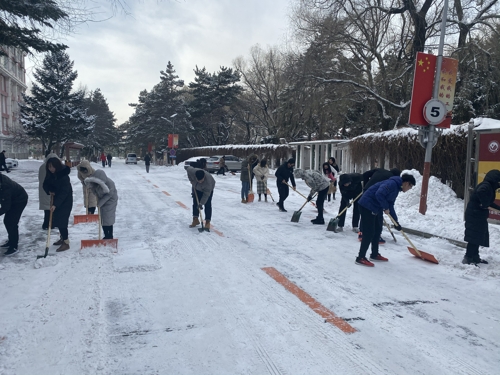 凛冽的寒风不能阻挡同学们高涨的热情,经过一个多小时的奋战,大家发扬吃苦耐劳、顽强拼搏的精神,团结协作,不惧寒冷,斗志昂扬,以最快的速度将积雪清理干净。经过大家的共同努力,校园道路变得畅通、洁净,保障了师生的出行安全。