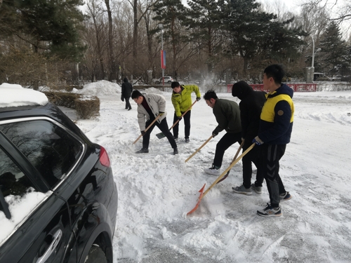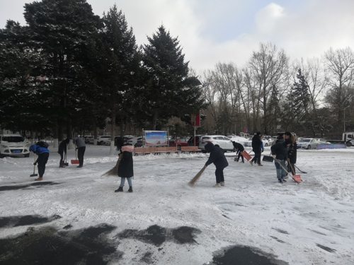 本网讯(通讯员 田鑫)近日由于降雪不断,校园内出现“忽如一夜雪花来”的场景,伴随着凛冽的寒风,气温骤降,给全校师生带来安全隐患,给校园道路交通带来诸多不便。为保障全校师生出行安全,11月18日中午,电气学院组织全体学生党员及第45期发展对象对分管区域的积雪进行了及时清扫。