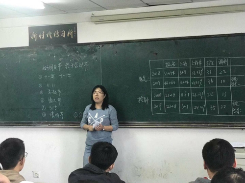 会上,刘帅师向在座学生详细梳理了考研流程。随后以学院18、19年研究生招生情况为出发点,让学生对报考有了更加清晰的认识。报考将近,她希望同学们在报考时要冷静客观地评估自己的复习情况,同时在不久之后的考试中,能保持良好的心态,充分发挥自己的实力。