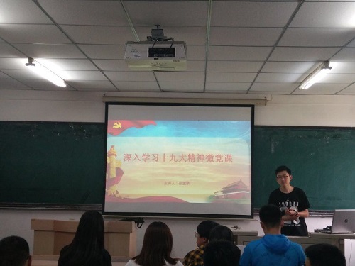 新闻网讯(通讯员 钱力为)为深入学习贯彻党的十九大精神,帮助同学们加强对十九大精神的领悟。2018年6月15日中午12时30分,学院于南湖校区主楼1401室举办“深入学习十九大精神”主题微党课。学院主席团成员,15级全体预备党员,16级班长支书参加了本次微党课学习。
