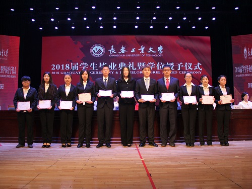 毕业典礼在雄壮的国歌声中拉开序幕,仪式伊始,副校长李占国宣布《2018 届本、专科学生毕业及学士学位授予情况》,我院丁文晴、沈孔界、郭永岐作为授予学位代表,接受校党委书记万春明,校长张会轩颁发毕业证书、授予学位。随后,校党委副书记李雁冰宣布《关于表彰 2018 届优秀本、专科毕业生的决定》《关于表彰 2018 届考取硕士研究生、专升本学生的决定》,我院优秀本科毕业生代表邵帅、汪泉,考研学生代表卢甜接受校领导颁奖。在我院2018届毕业生中,汪泉、芦甜、邵帅、曹瑞丽、古静、孙明兴、张猛七人荣获“优秀本科毕业生”称号,白东平等56人顺利考取硕士研究生。这些毕业生是电气学子精神风貌与电气学院形象风气最好的体现,他们所获得的优异成绩充分展现了他们在大学生涯中的辛勤付出,也展现了我院在学生教育方面所收获的巨大成就。在仪式最后的讲话中,校长张会轩对全体毕业生送上了诚挚的祝贺,对毕业生们提出了最为殷切的期望,并希望毕业生们在新的起点上能够秉承“爱国敬业,求实创新”的校训精神,努力工作,在新的岗位上为母校争光,为国家经济建设和社会发展做出工大人应有的贡献。