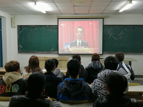党委积极响应学校号召,组织本院师生、学生干部于主楼1303室、1401收听室收看“两会”开幕式盛况。