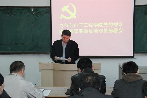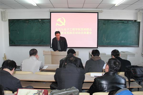 | 3月5日下午,学院党委在主楼1401室召开党的群众路线教育实践活动动员大会。学校第四督导组成员,全院教师参加了会议。会议由学院教育实践活动领导小组副组长、院长李元春主持。