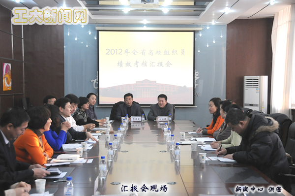 | (通讯员 徐建伟)1月8日上午,全省高校组织员绩效考核工作汇报会在我校办公楼二楼会议室召开。以吉林省高校工委正处长级组织员卢桂贤为组长的考核组,听取了省内相关高校汇报。