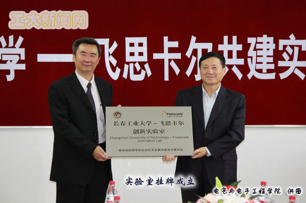 -飞思卡尔共建实验室挂牌仪式。飞思卡尔半导体(中国)有限公司业务拓展总监殷钢、大学计划经理马莉,校长张德江、副校长胡明,教务处、学院领导和部分教师代表出席挂牌仪式。仪式由院长李元春主持。