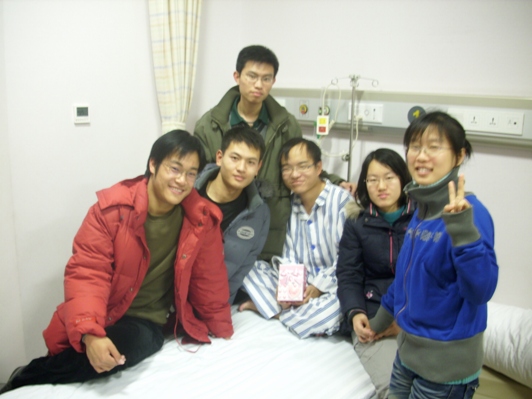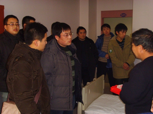 党委副书记周文军携学生办公室全体老师及院学生会学生干部来到吉大一院病房看望卫亚军同学,并将各方捐出的四万一千多元钱交到了卫亚军的父亲手中。病房里周书记关切地和卫亚军的父亲交谈着,他表示学院会本着以生为本、为生服务的原则,在学生有困难时一定会在第一时间尽一切可能,予以帮助。老师和同学们则将学校同学的祝福和希望一一转告给卫亚军,希望他不要悲观,勇敢面对,并鼓励他坚强开朗,以乐观的态度和病魔斗争下去。