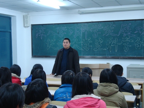 | 2008年11月17日,我院红旗社在主楼403会议室举办以“深入学习科学发展观,促进大学生科学全面发展”为主题的讲座,邀请学院关工委常务副主任董占武老师作辅导报告。讲座由学院学生党支部书记郑洪斌主持,学院学生支部全体党员和部分红旗社成员参加这次讲座。 这次讲座是我院开展深入学习实践科学发展观活动集中学习、调查研究阶段的一项重要举措。在一个小时的讲座中,董占武主任深入浅出,旁征博引,系统介绍了科学发展观产生的时代背景,阐明了科学发展观的深刻内涵,论述了把握科学发展观的十个基本点,提出了实践科学发展观,促进大学生科学的全面发展途径和要求。与会同志深受启发,表示要按照学校深入贯彻落实科学发展观的要求,努力把学习的体会和成果转化为成长成材的实际工作中,以便毕业后为祖国做贡献。 |