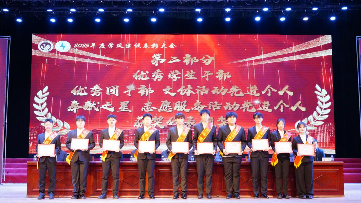 为充分发挥先进典型、模范人物的示范引领作用,激励各级团组织、班级及全院学生以更加坚定的信念、更加强烈的担当、更加饱满的热情投身学院高质量发展,学院决定对王佳硕等10名“十佳大学生”、张振等10名“十佳自立自强大学生”、朱亦凡等10名“学习楷模”、王敬淇等12名“学习之星”、平如慧等7名“单科状元之星”、何易桦等10名“学习进步之星”、杨熠等10名“优秀学生干部”、王博等10名“优秀团干部”、绳国兵等10名“文明大学生”、文栋等10名“奉献之星”、刘建明等10名“科技创新先进个人”、陈博诚等7名“文体活动先进个人”、肖博雅等5名“志愿服务活动先进个人”、20240401班团支部等4个先进团支部、20240405班等4个“优良学风班级”、南湖6栋424室等10个“文明寝室”、程帅智等10名“优秀研究生干部”、马飞龙等7名“科技青年(研究生)”、程云龙等9名“研究型科技青年(研究生)”、王帅等4名“学习之星(研究生)”予以表彰,与会领导依次为获奖集体和个人颁发了奖状和证书。